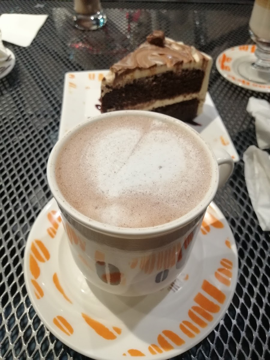 En esta ocasión solo tomamos un capuchino, el de cajeta la verdad no sabía a cajeta, sí la tenía en el fondo pero conforme se fue deshaciendo solo se iba poniendo más dulce la bebida. En cuanto al de crema irlandesa, sabía a un andatti de vainilla, no sé percibía ese sabor característico, siento que deberían de reformular sus recetas. El precio de los postres considero que está un tanto elevado y siento que hay pocas opciones o bien, opciones que valgan la pena probar. El lugar estaba un poco vacío y tranquilo, ideal para trabajar o leer. La atención del personal fue excelente, en pocos lugares los empleados lucen tan amables y contentos.